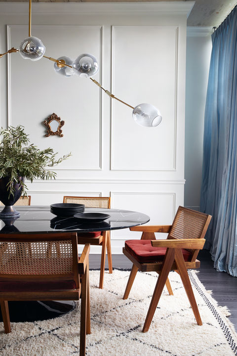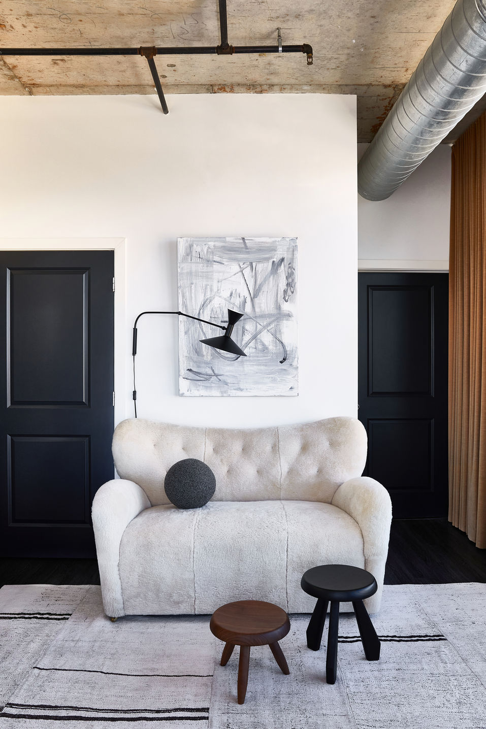 I wanted a space that was contemporary yet still invoked a sense of traditional Americana that I was accustomed to growing up in Chicago. The concrete ceilings paired with the painted moldings and paneling along the walls, the traditional fireplace mixed with edgy Italian marble- it was a marriage between French antiques, mid century Italian seating and traditional elements in American architecture. I wanted the space to feel calm and escape the chaos of the city- a place of respite.